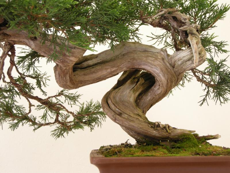 Sehr harmonischer Wacholder mit viel Bewegung und sehr natürlichem Totholz. Yamadori aus Spanien evtl. 100 Jahre alt und schon relativ feines Laub.